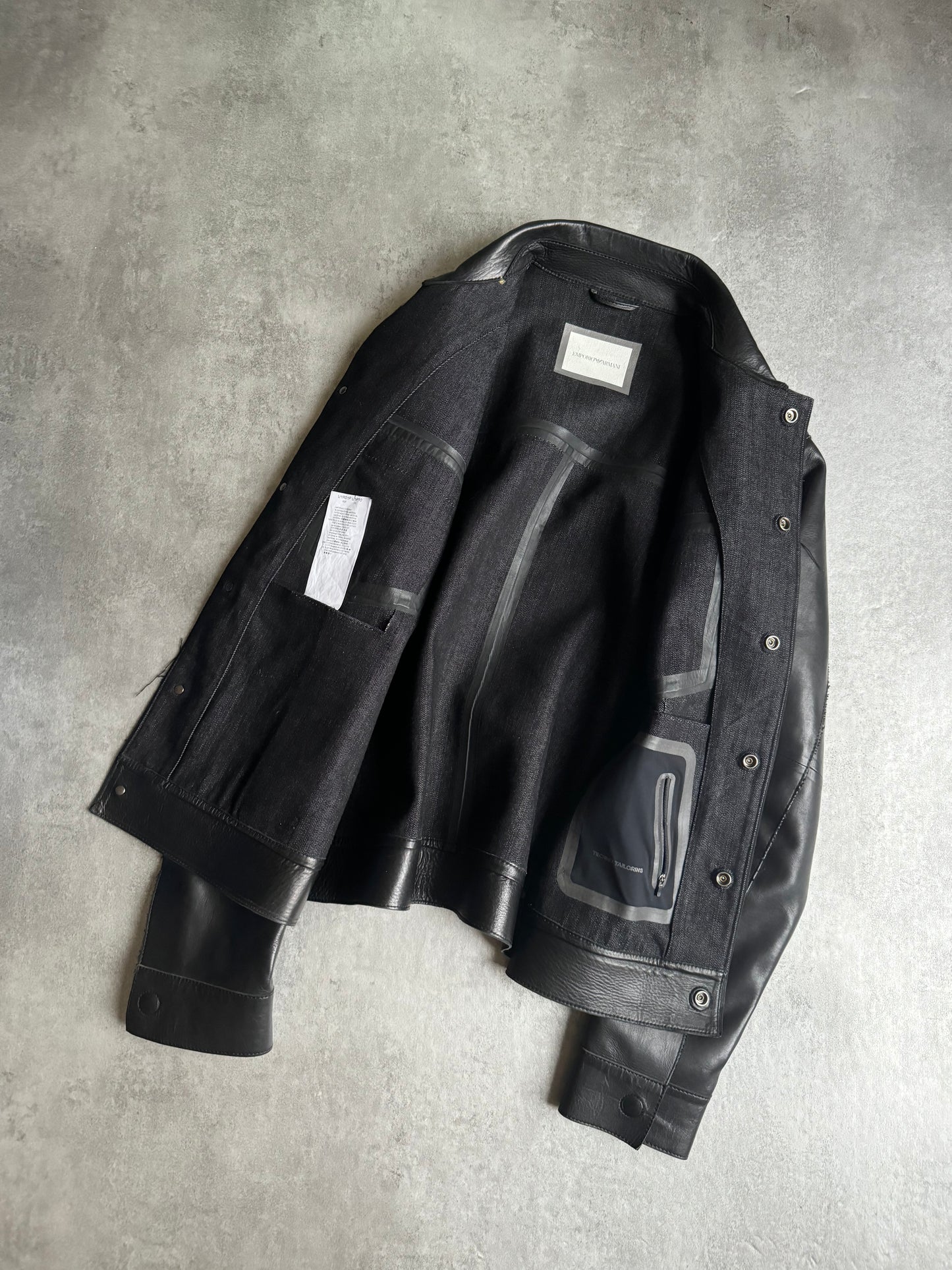 AW2016 Emporio Armani Distressed Black Minimalist Leather Jacket