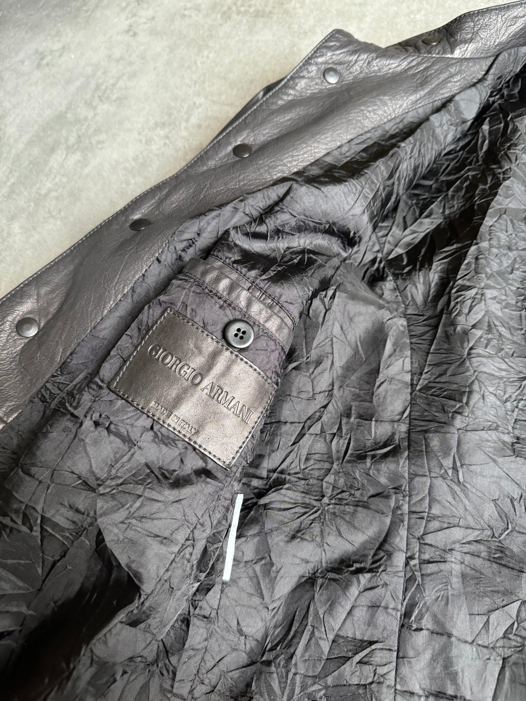 AW2011 Giorgio Armani Black Samurai Leather Jacket. This Giorgio Armani Black Samurai Leather Jacket is a sophisticated and unique piece from Giorgio Armani's Autumn/Winter 2020 collection. Known for his impeccable tailoring and innovative designs, Armani created this jacket with a nod to the elegance and power of traditional samurai armor, blending it with contemporary fashion sensibilities. Retail price was 2800€. Still in excellent condition, worn a very few times only. The wash tag has been cut off. Size 48 (Medium).