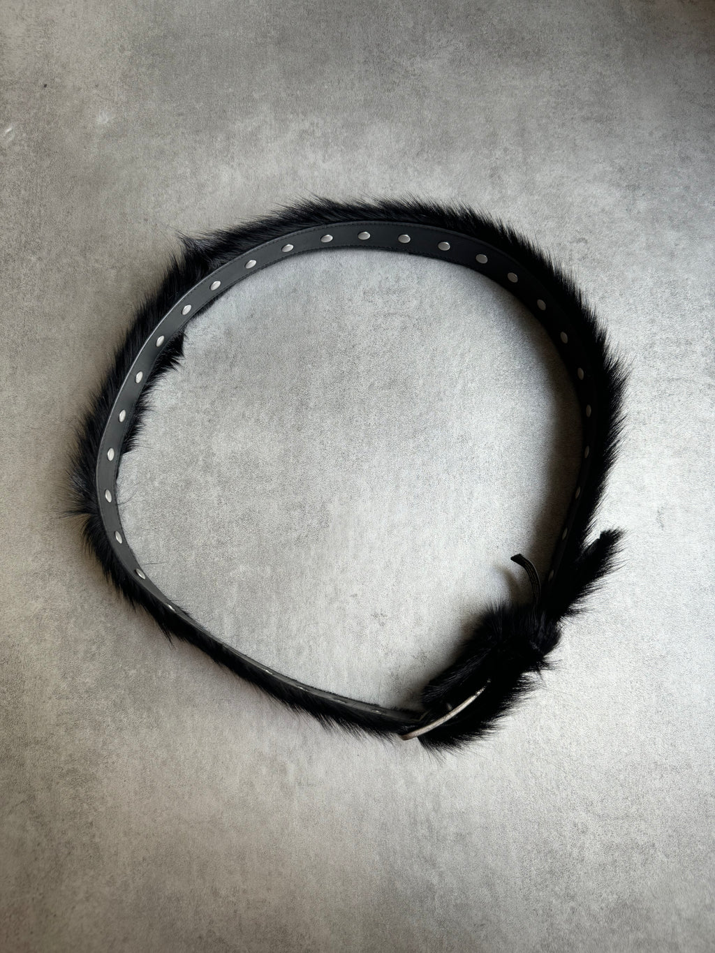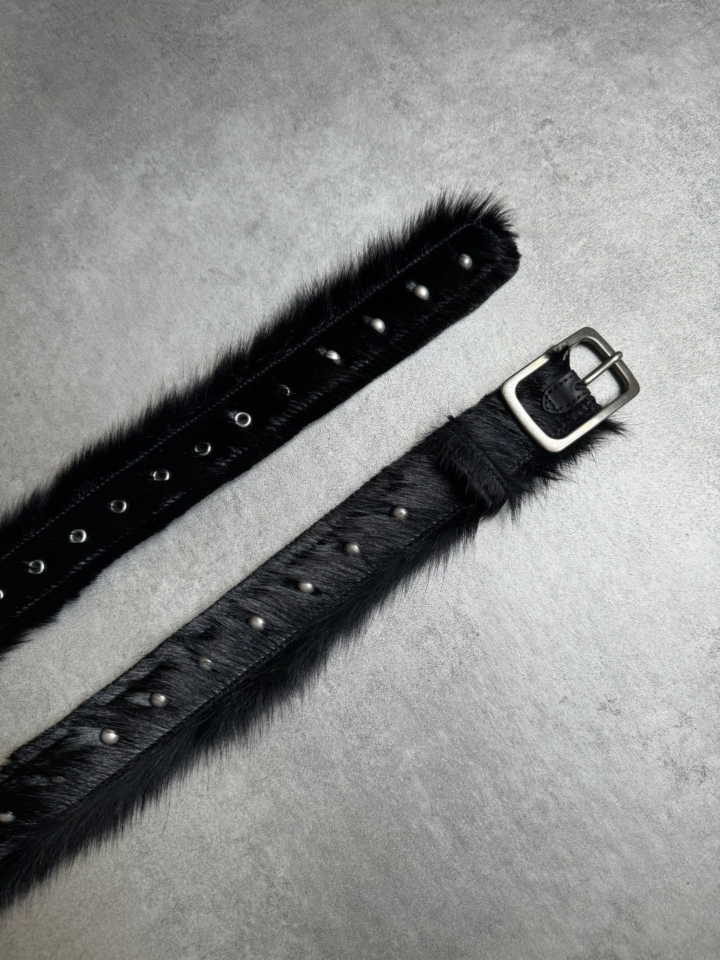 AW2022 Dries Van Noten Black Pony Hair Fur Belt (OS) - 1
