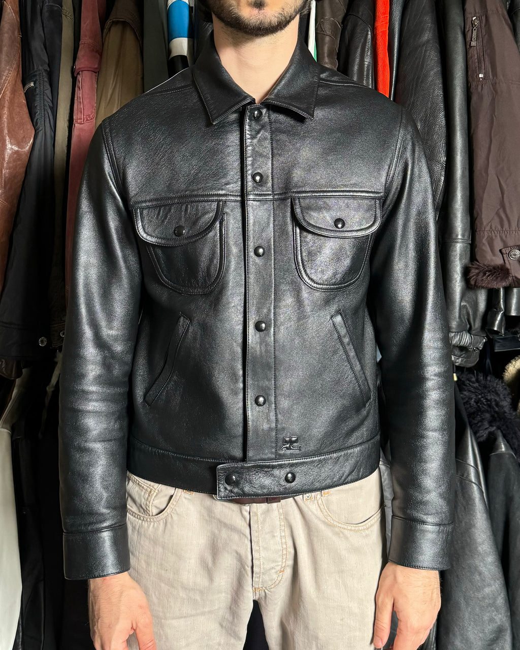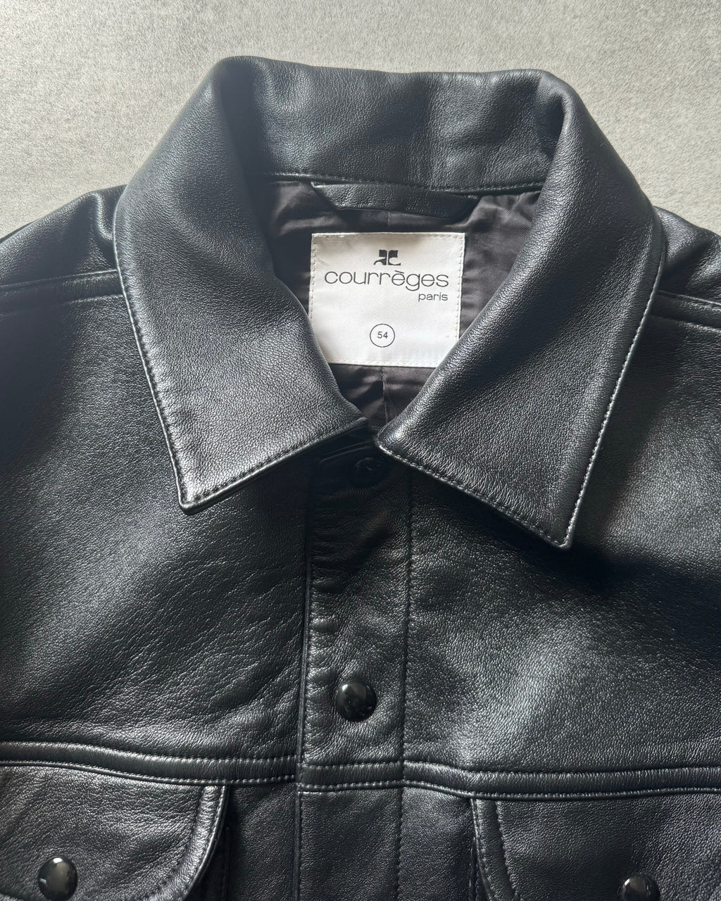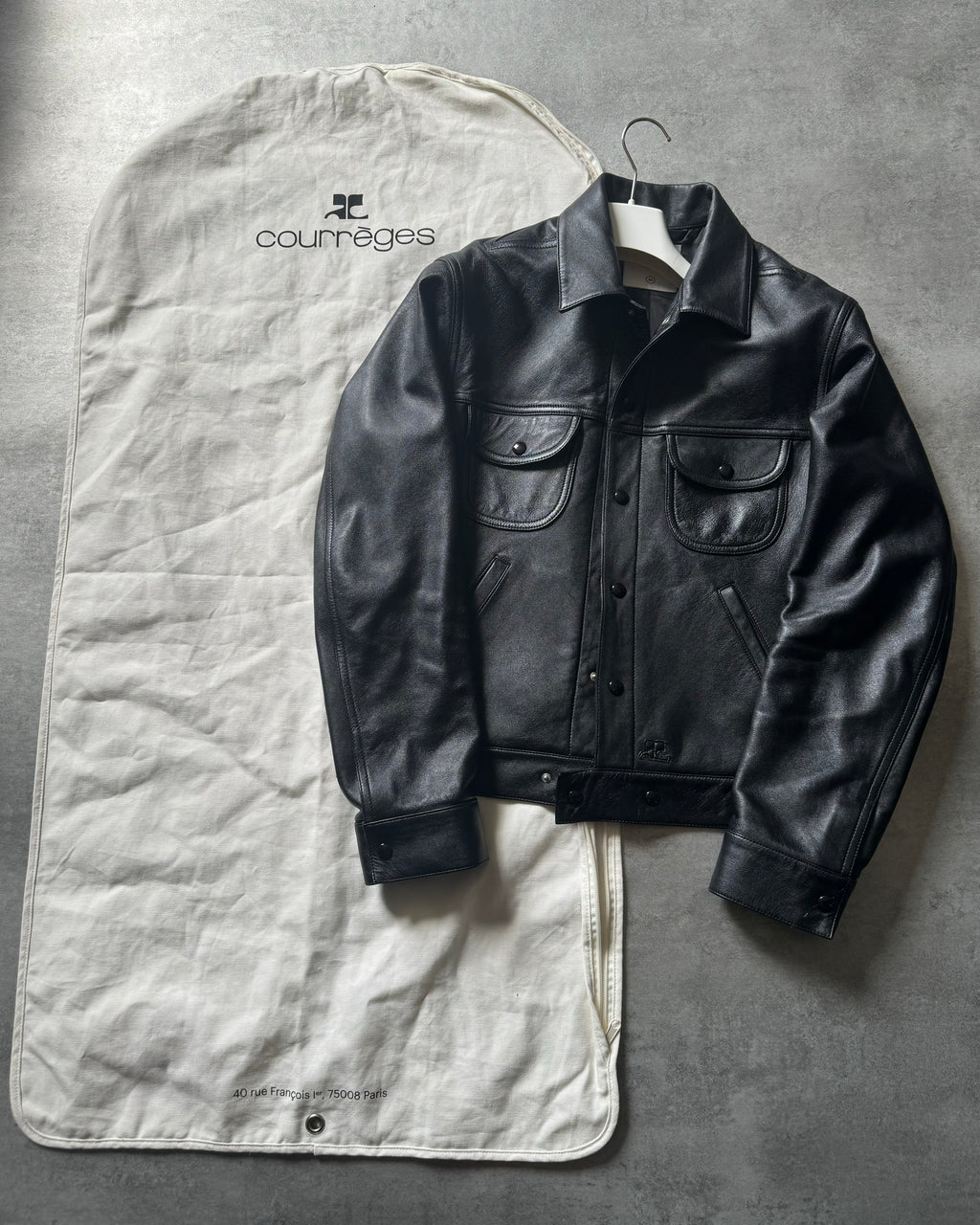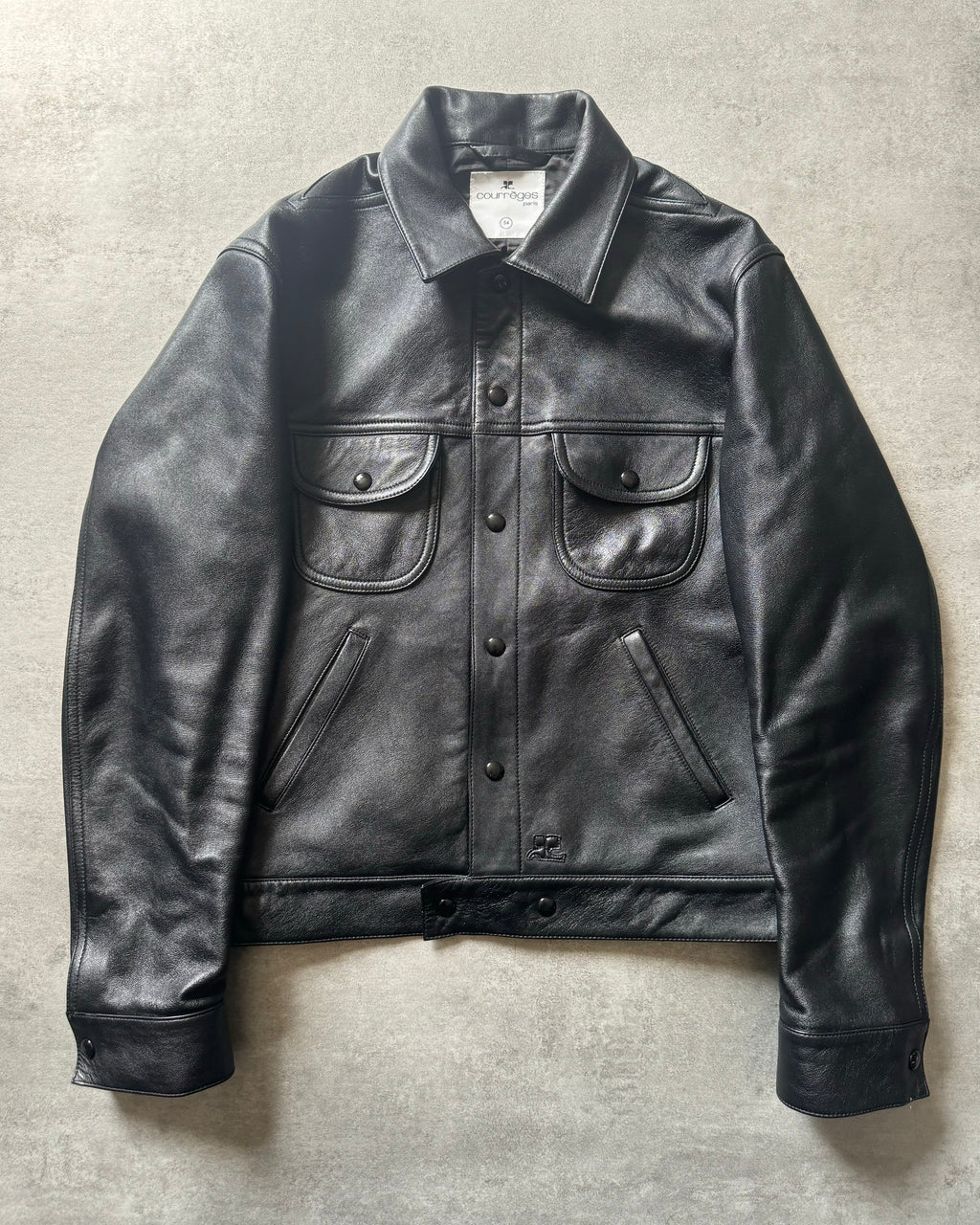 AW2023 Courrèges Worker Black Minimalist Leather Jacket (L) - 1