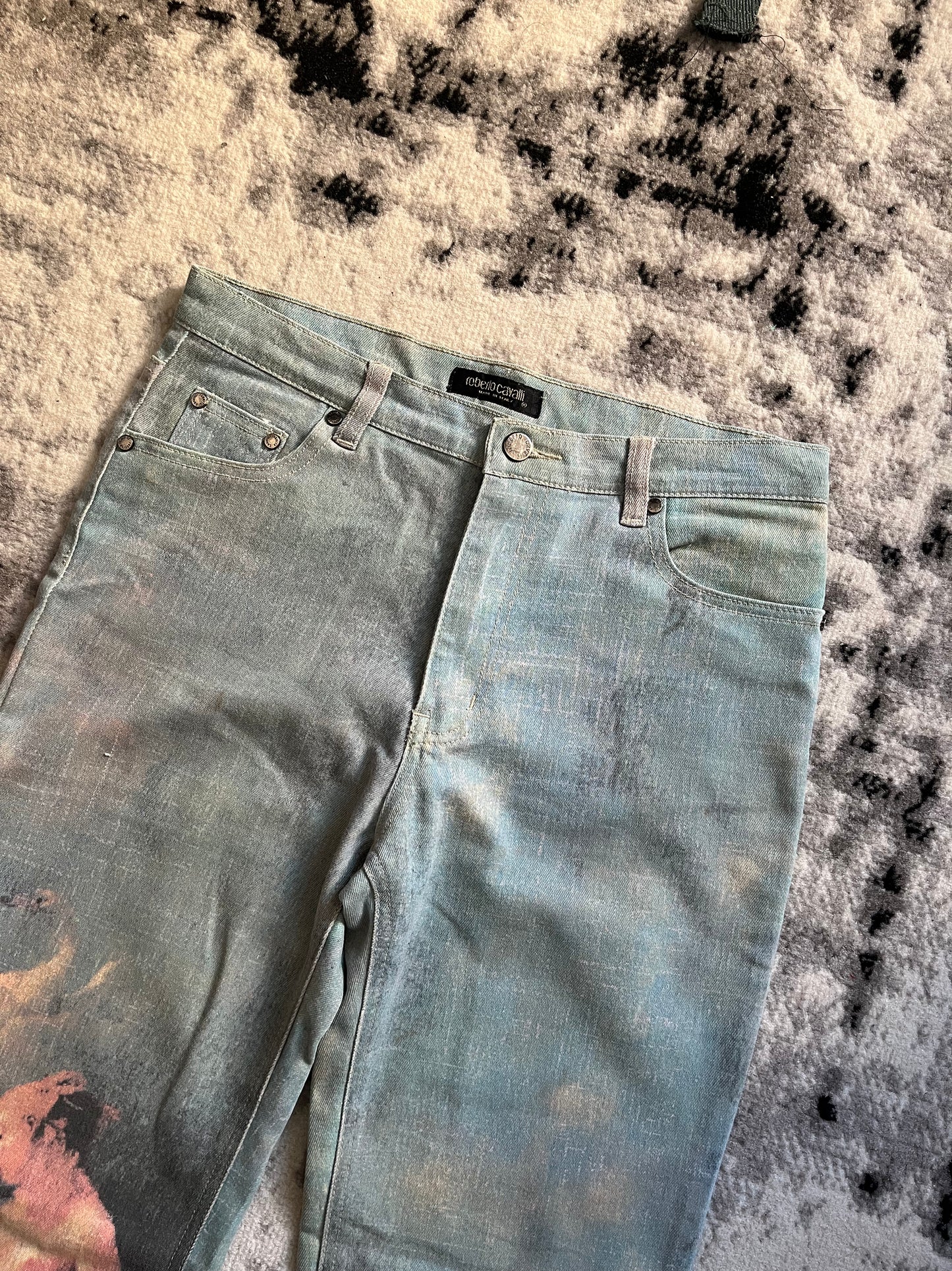 Crafted under the Roberto Cavalli label, renowned for its Italian luxury and daring designs, these jeans reflect the brand's commitment to pushing the boundaries of fashion.