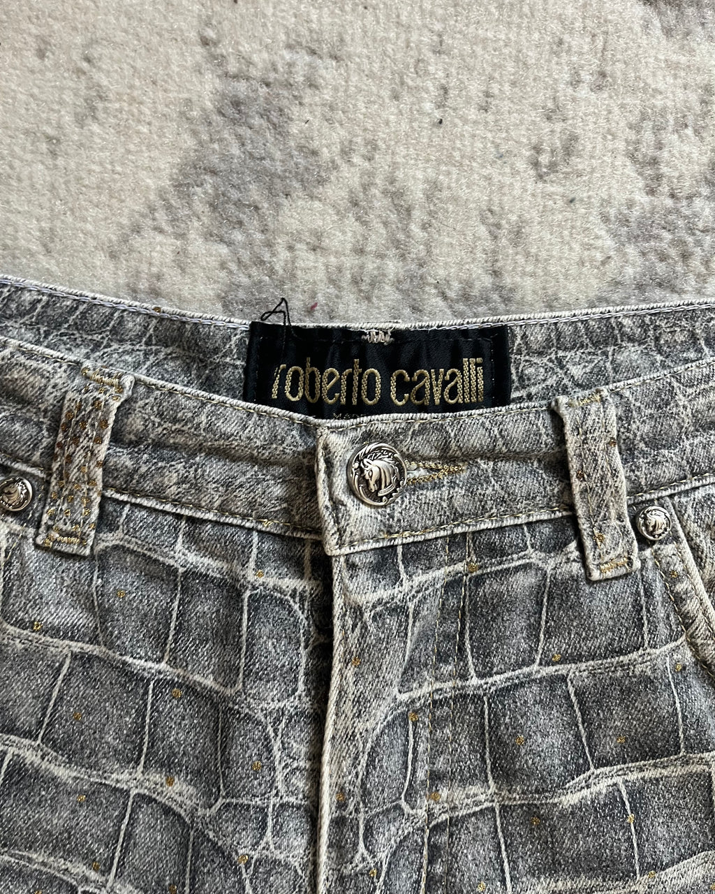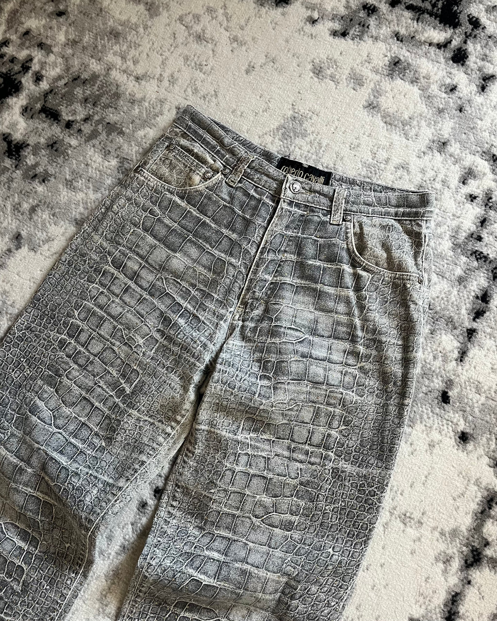 AW1999 Roberto Cavalli Crocodile Skin Effect Grey Pants