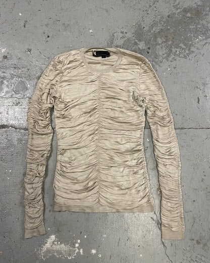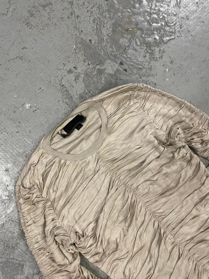 Constructed from a soft, breathable fabric, this piece features exquisite pleats that enhance its flattering silhouette. The serene beige hue pairs effortlessly with any ensemble, making it a versatile addition to your wardrobe. This top embodies timeless charm. In good condition. Marked size M, fits women M.