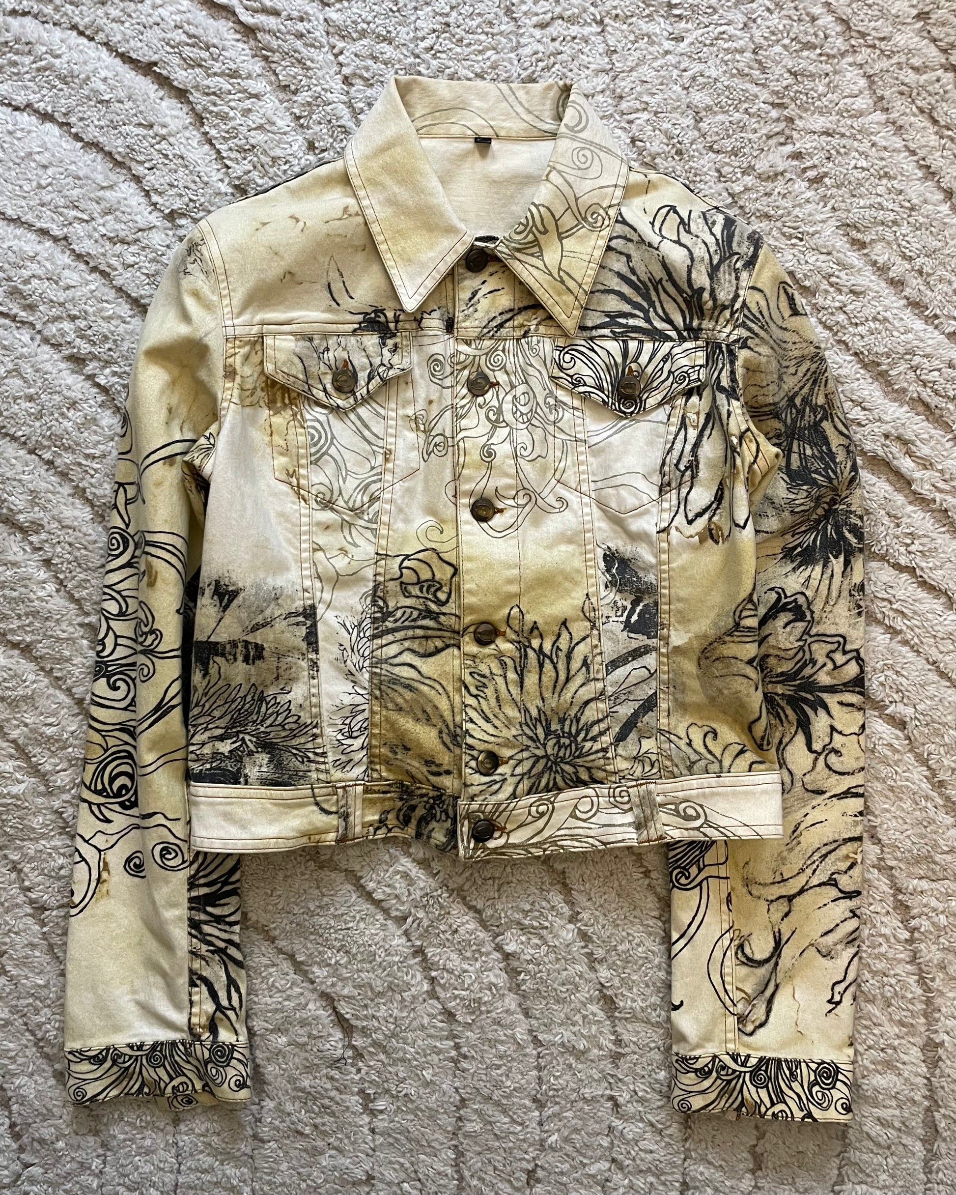Cavalli Chinese Ink Flowers Cropped Jacket