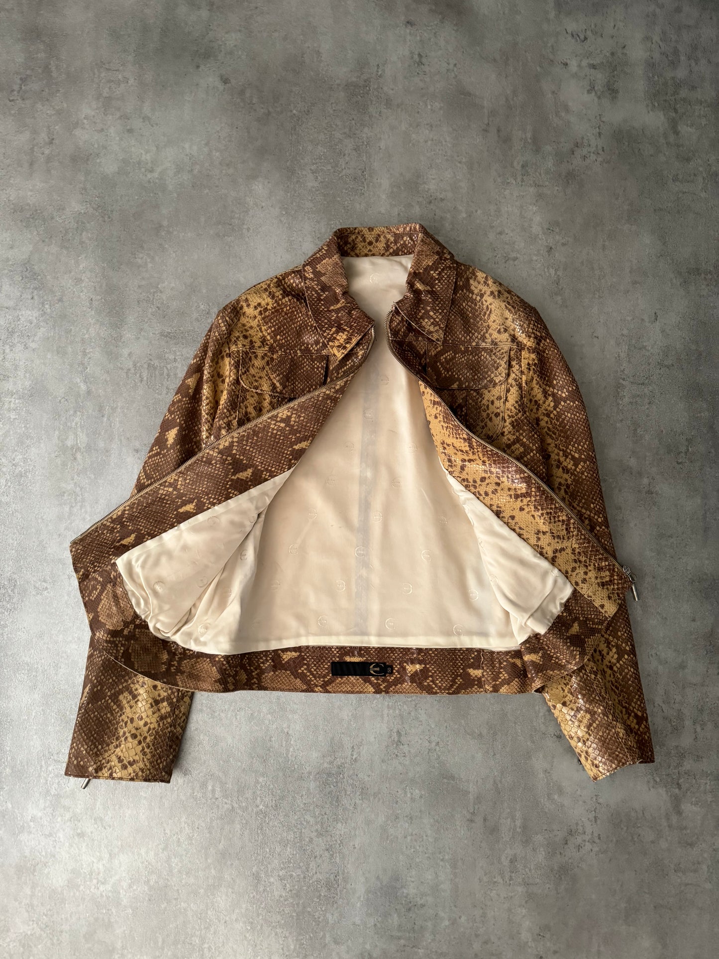 Cavalli Varnished Python Leather Camel Jacket (M)
