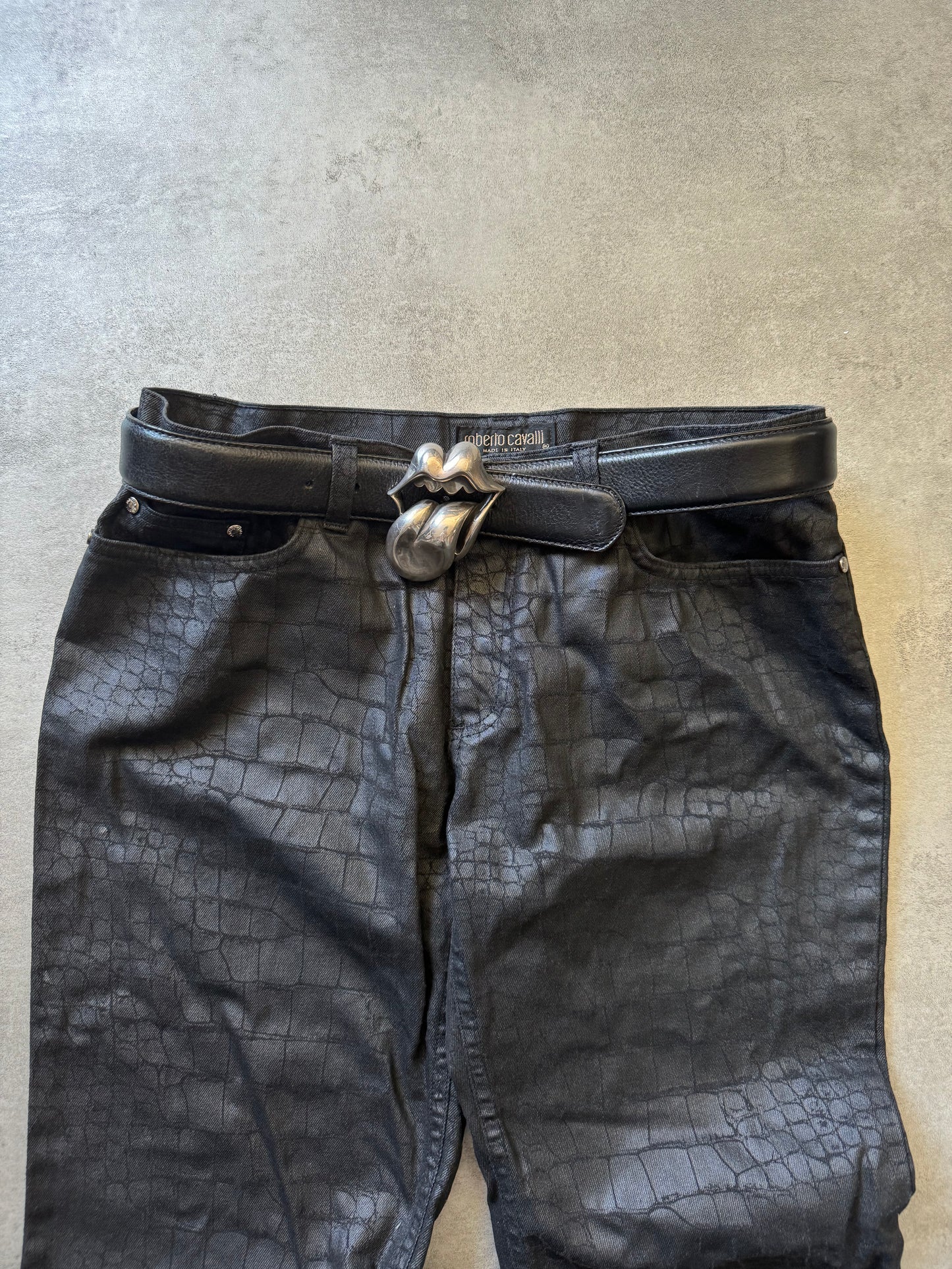 Chrome Hearts Rolling Stones Silver Leather Belt