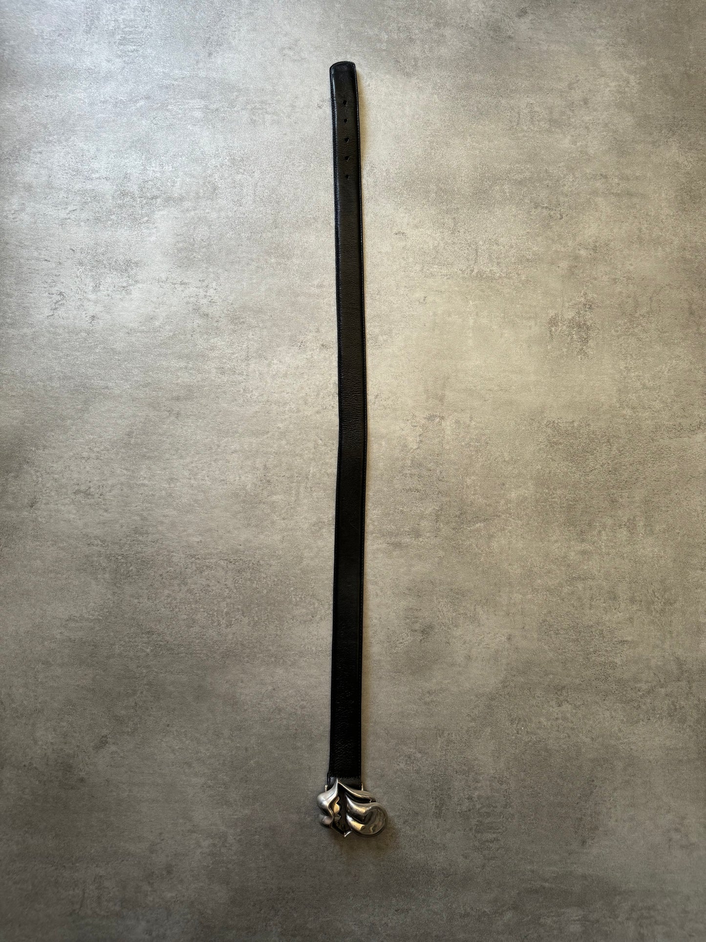 Introducing the Chrome Hearts Rolling Stones Silver Leather Belt: a striking fusion of rock 'n' roll heritage and luxury craftsmanship. The Chrome Hearts Rolling Stones Silver Leather Belt is a masterpiece of design, featuring an intricately detailed silver buckle adorned with the iconic Rolling Stones tongue and lips logo. This emblem, synonymous with rock 'n' roll rebellion, is given a luxurious twist through Chrome Hearts' meticulous silverwork. The leather strap, made from premium quality materials, is sleek and durable, complementing the boldness of the buckle.