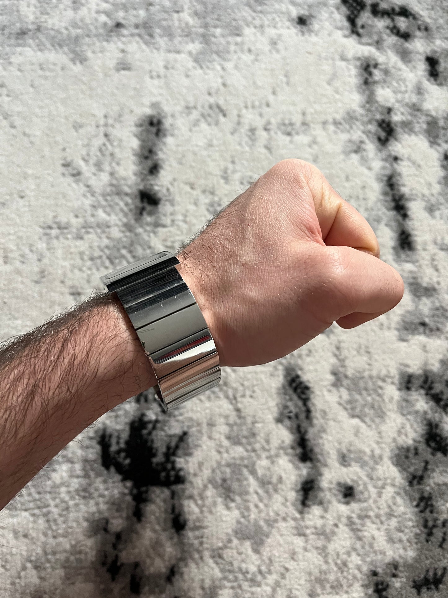 The watch boasts a classic round stainless steel case that exudes refinement and durability. The stainless steel bracelet is not only stylish but also comfortable on the wrist. The deployment clasp ensures a secure fit while maintaining a seamless aesthetic. You can easily adapt the size of the bracelet by removing certains links if necessary. Fits small & big wrists. Still in a great overall condition