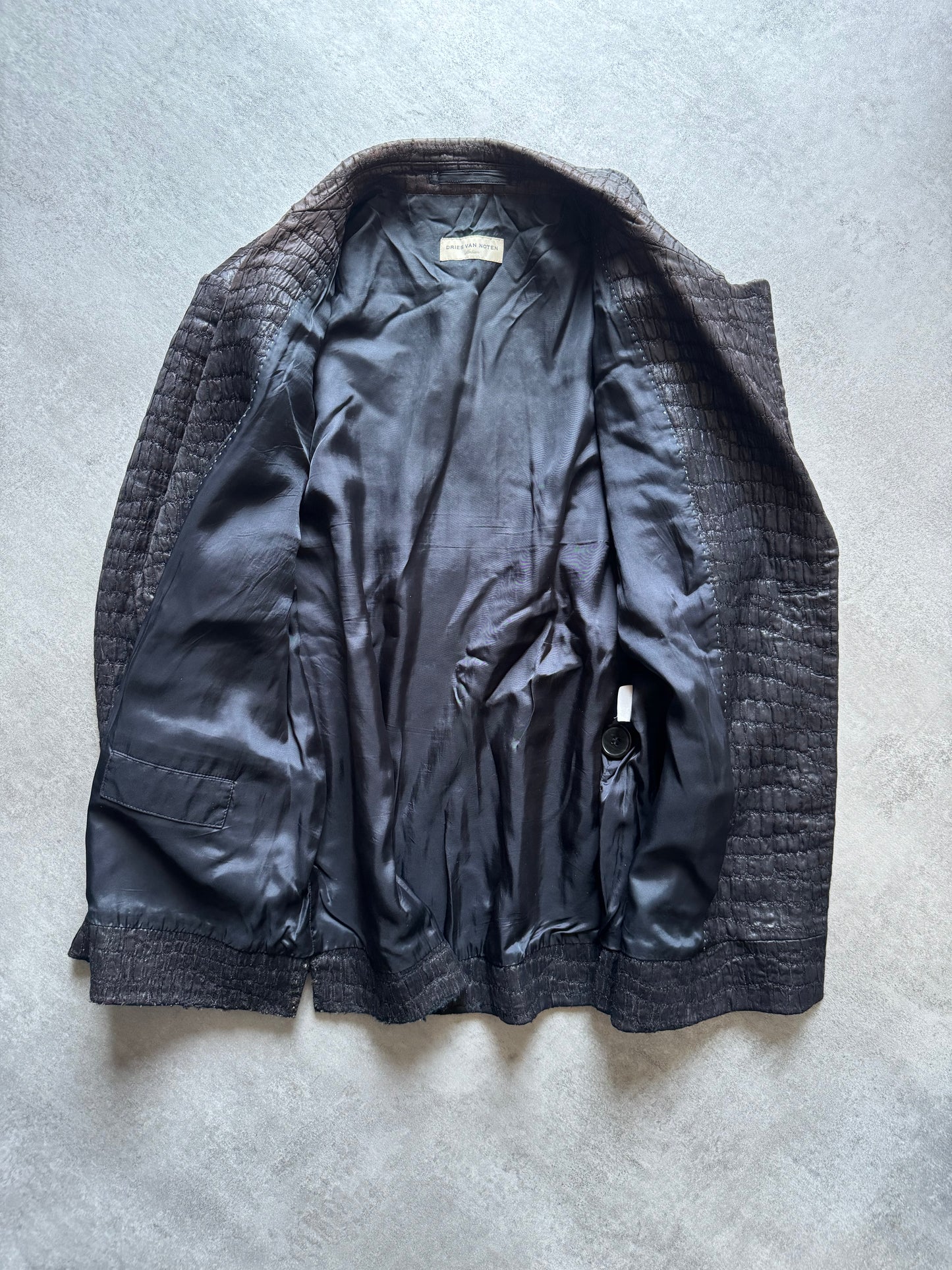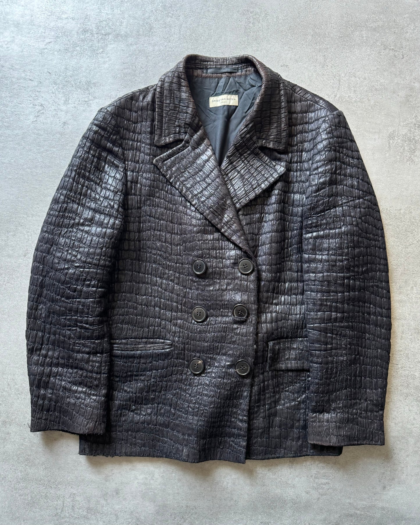 Dries Van Noten Black Crocodile Effect Smooth Blazer (S) - 1
