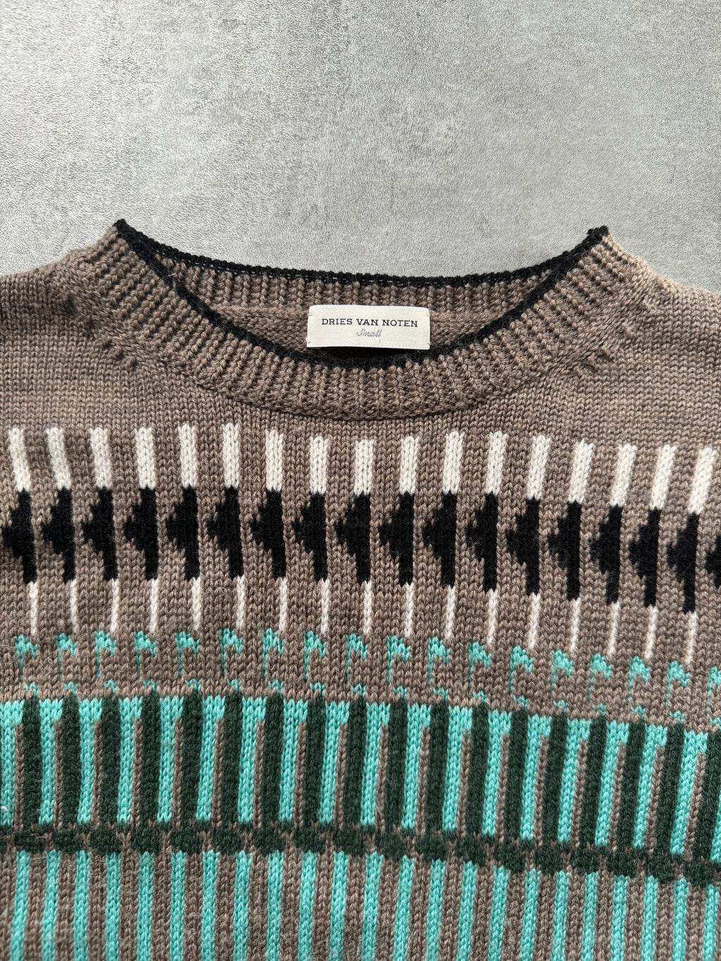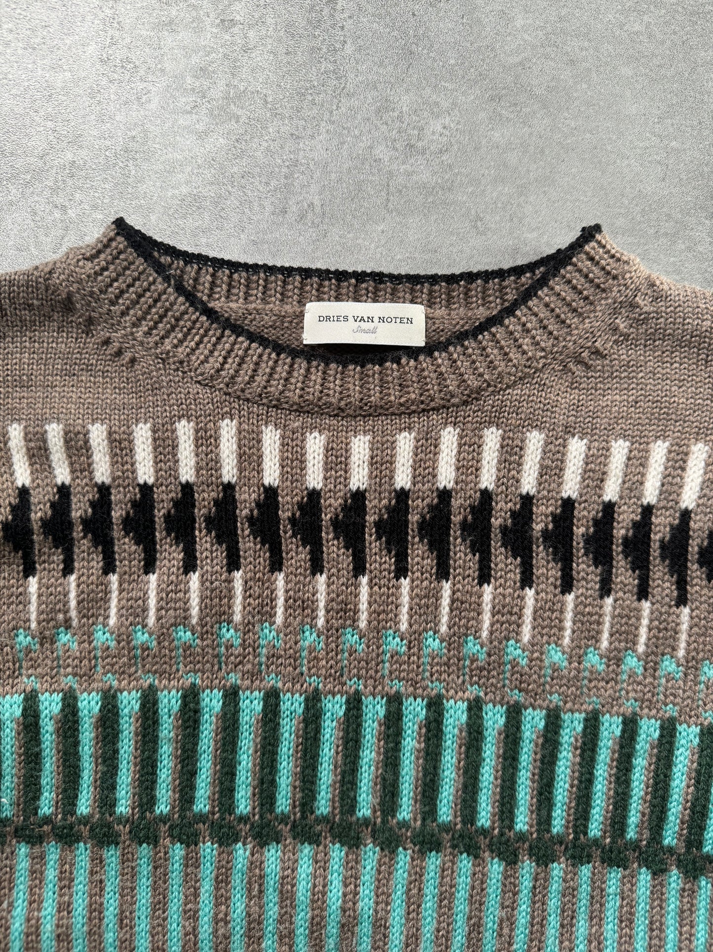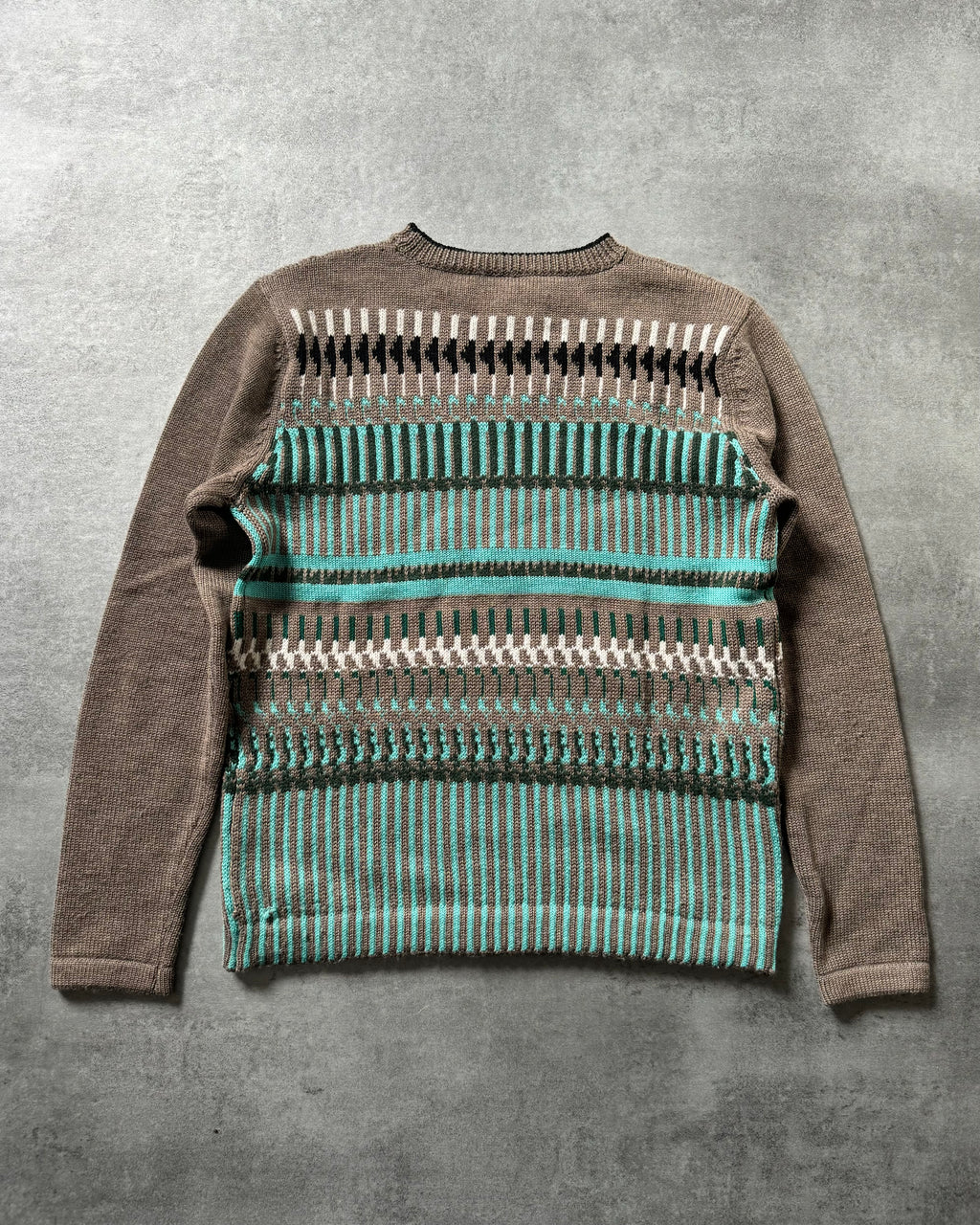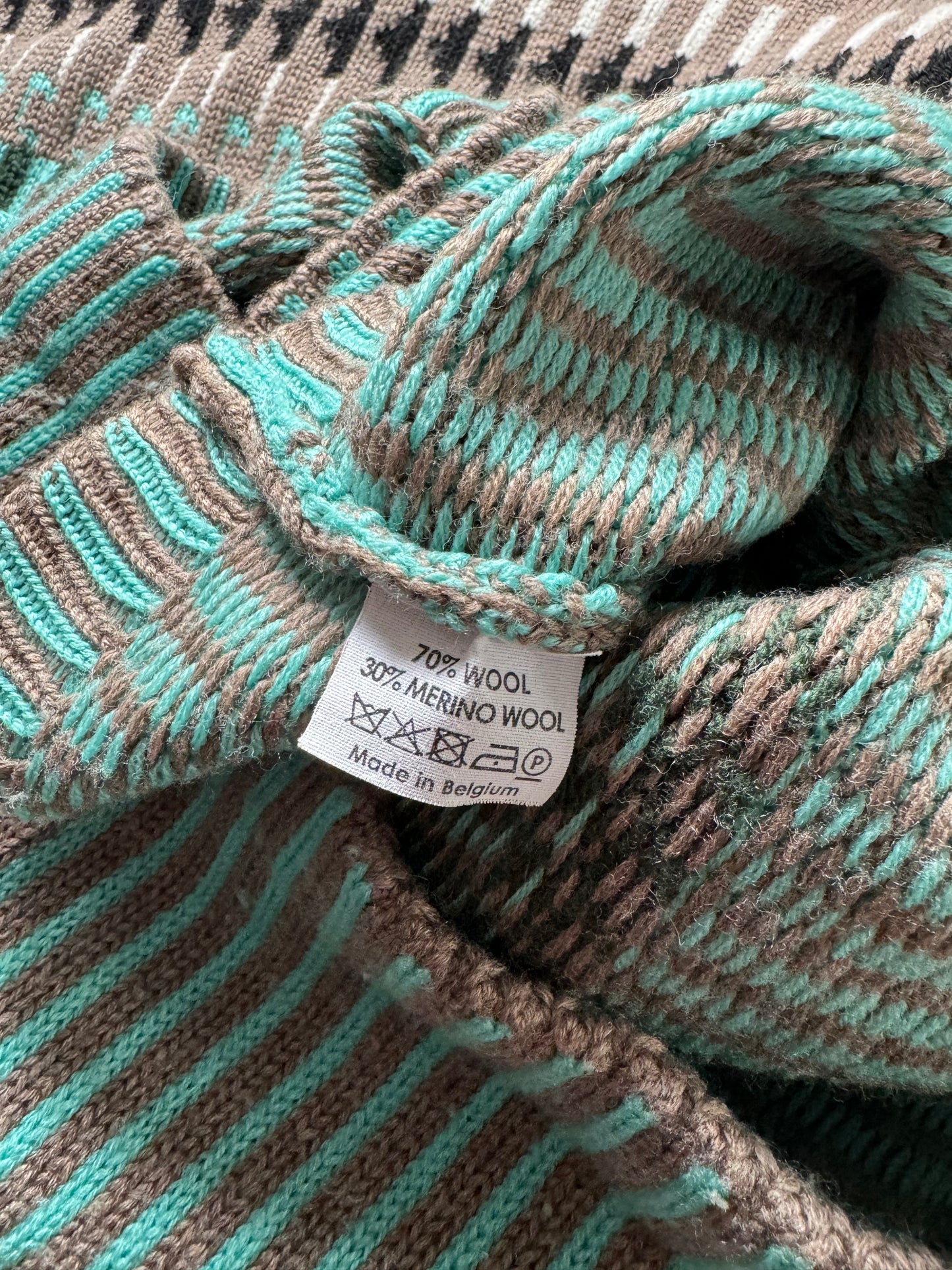 Made from high-quality wool in a striking combination of blue and grey, this sweater exudes a sense of energy and vibrancy. The color-blocking design adds visual interest and dimension, while the luxurious wool fabric ensures both warmth and comfort. Still in a great overall condition, The sweater is pilling a little. Marked as size S, fits XS men / S women. Length - 58.5cm / Sleeves - 59cm / Shoulders - 42cm