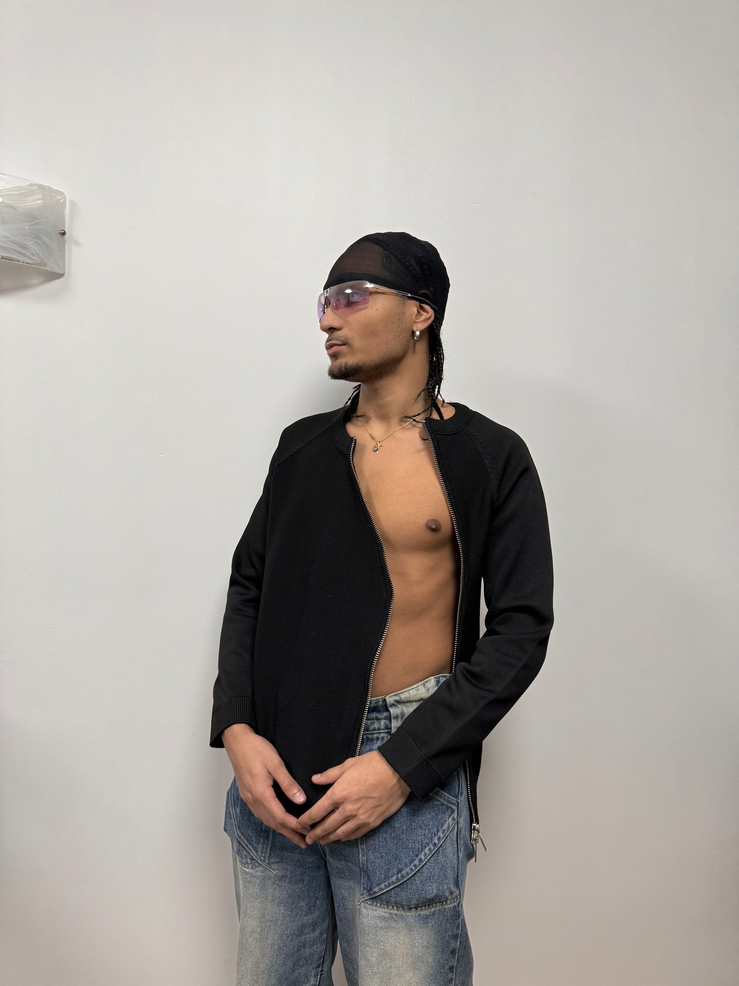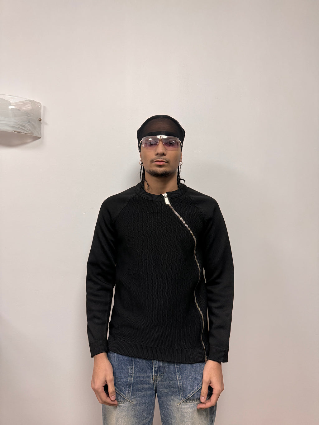 FW2015 Emporio Armani Asymmetrical Full-Zip Sweater