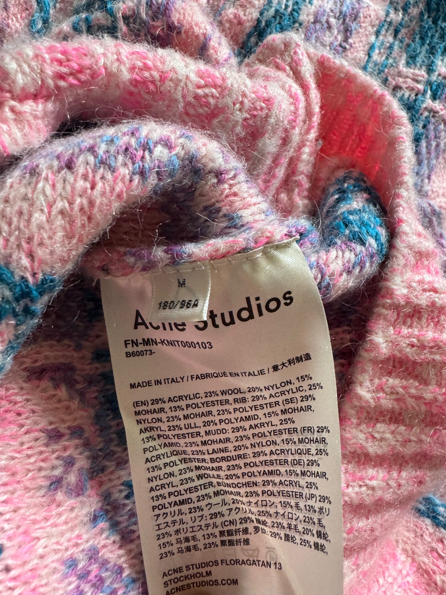 FW2019 Acne Studios Striped Intarsia Knit Pink Jacquard Sweater (L)