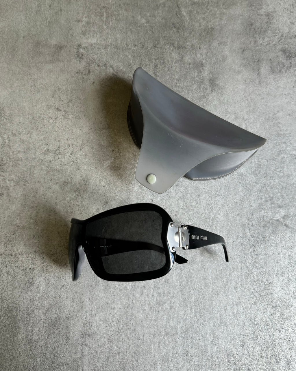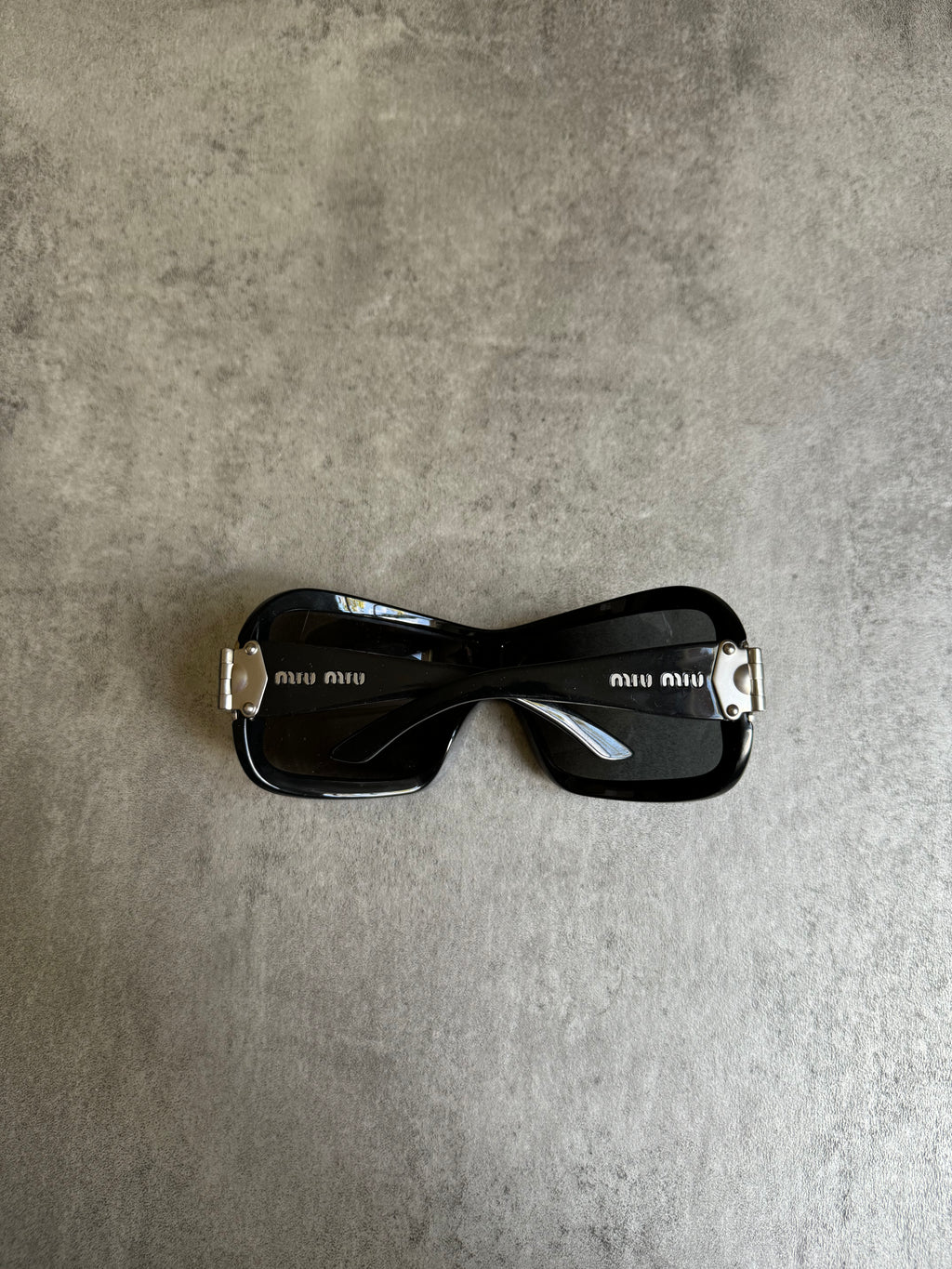 MiuMiu Black Silver Frame Avant-Garde Sunglasses