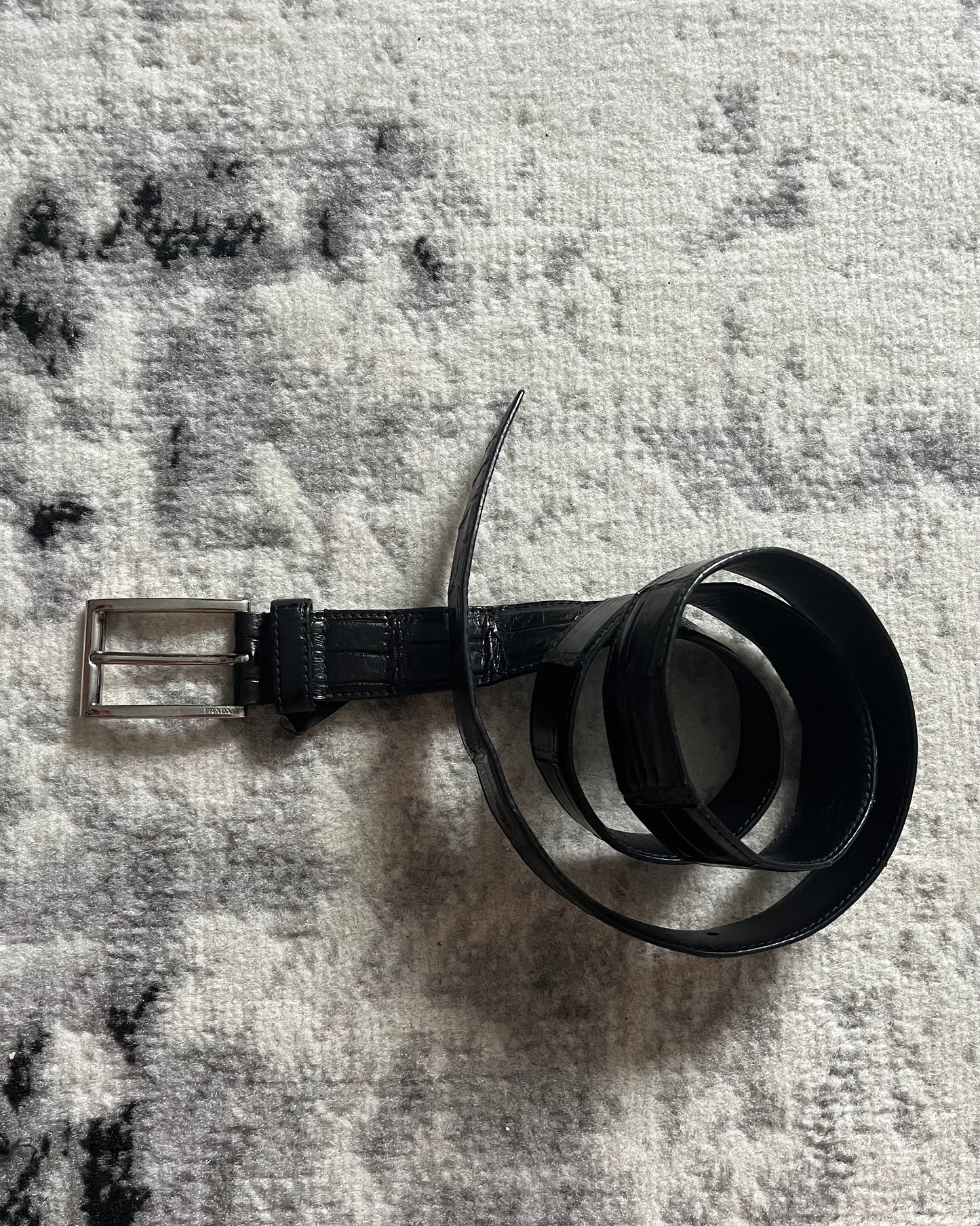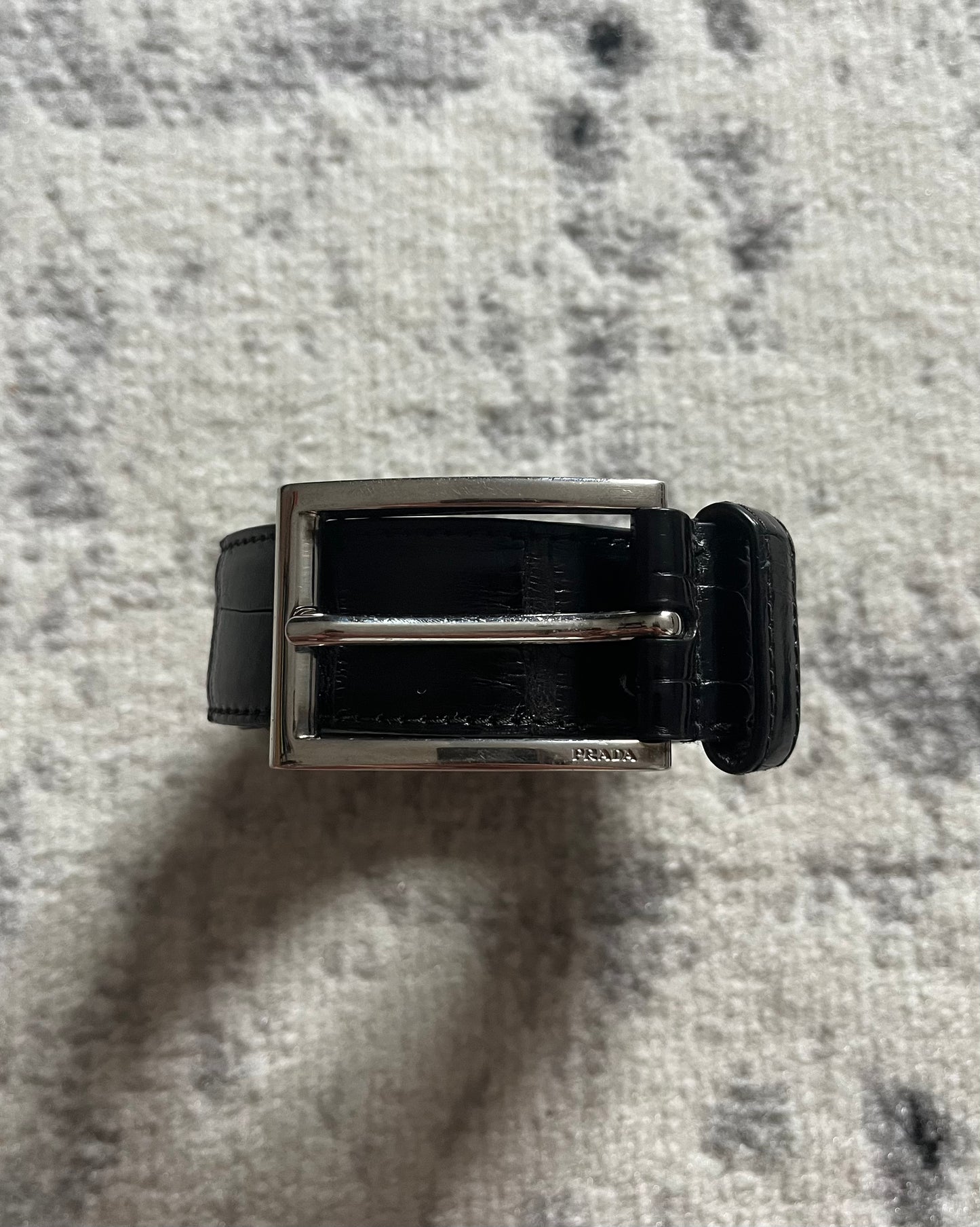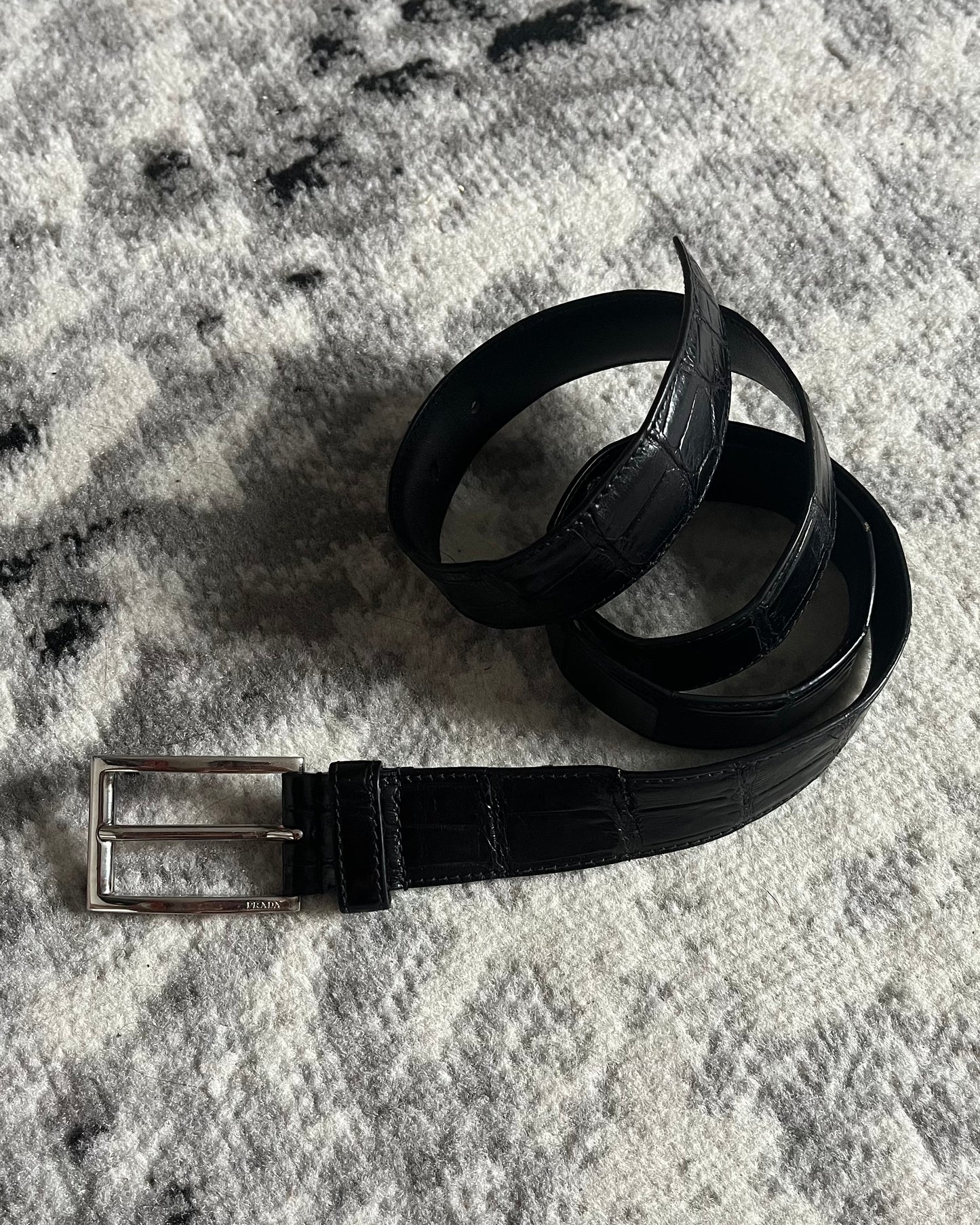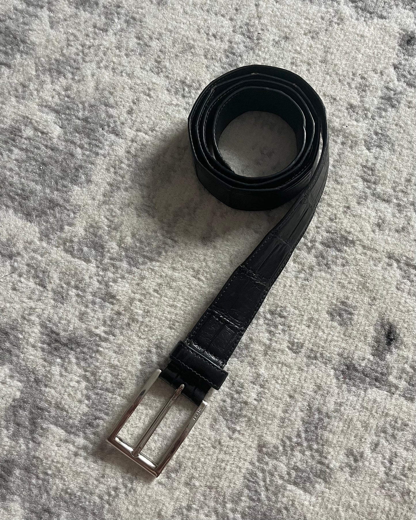 This Prada belt is a testament to the brand's unwavering commitment to quality and luxury. Crafted entirely from genuine crocodile leather, it embodies the epitome of opulence and sophistication. The crocodile leather is not only known for its unmatched beauty but also for its durability, ensuring that this belt is a long-lasting investment piece.
