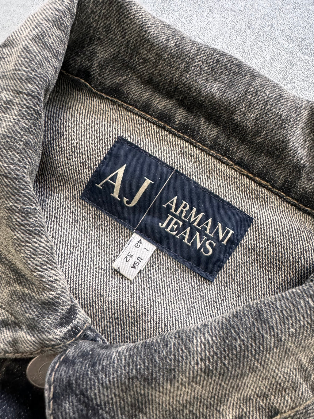 Faded Armani Denim Jacket. Perfect for daily use. The sleeves are long. Hand-measured with the garment laid flat.