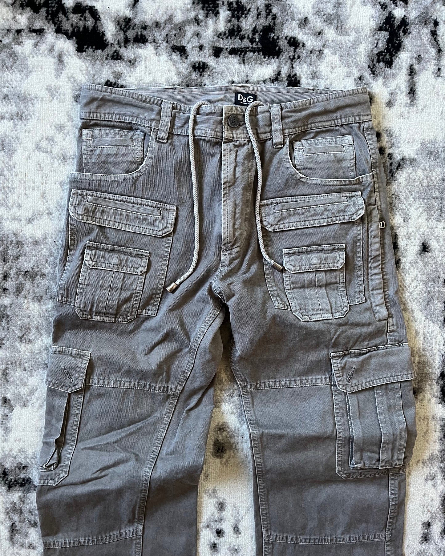 Invest in a piece of fashion history with the Dolce & Gabbana SS08 Grey Military 13 Pockets Cargo Pants. Beyond just pants, they're a representation of your appreciation for innovative design, utility, and the enduring legacy of Dolce & Gabbana's distinct style.
