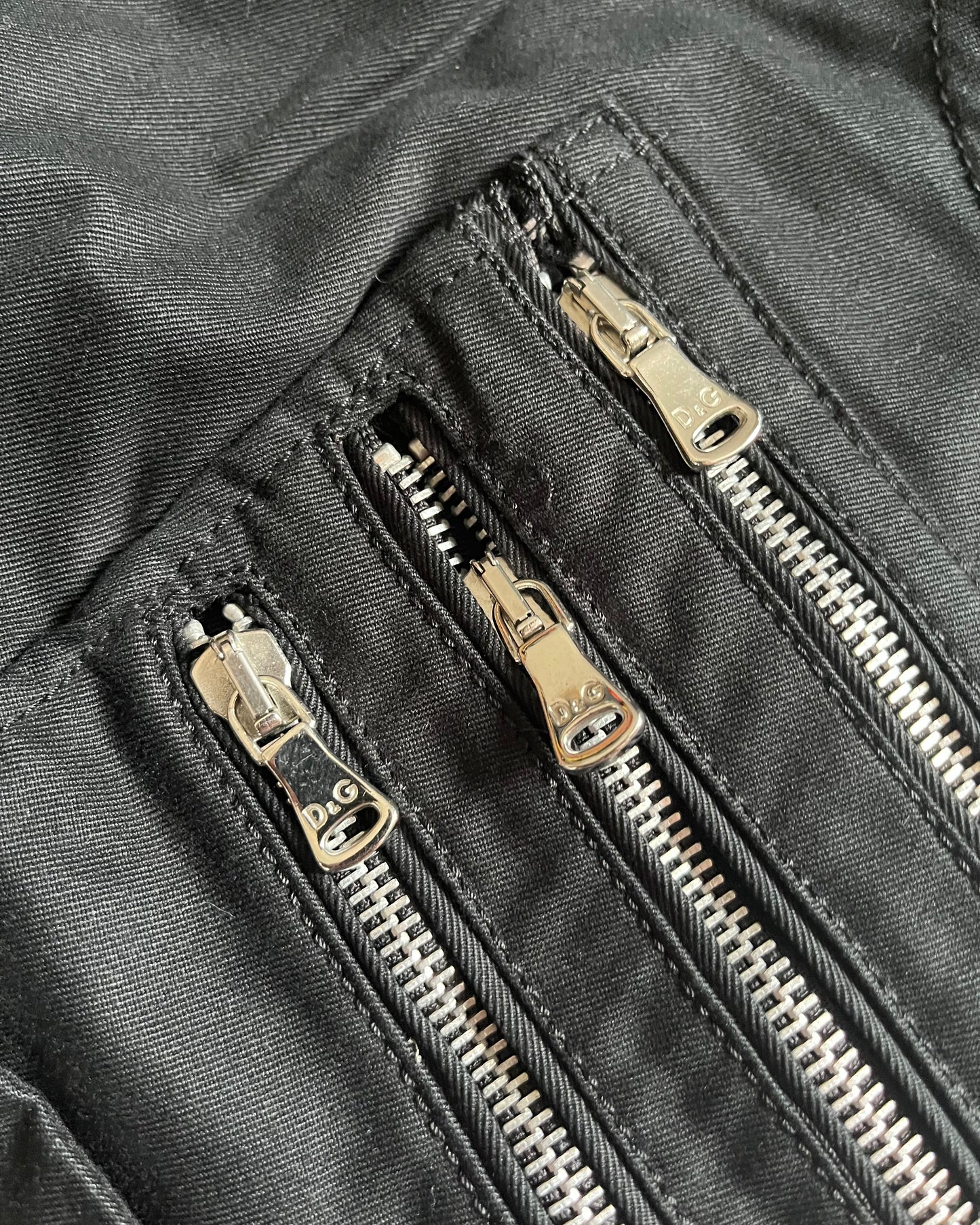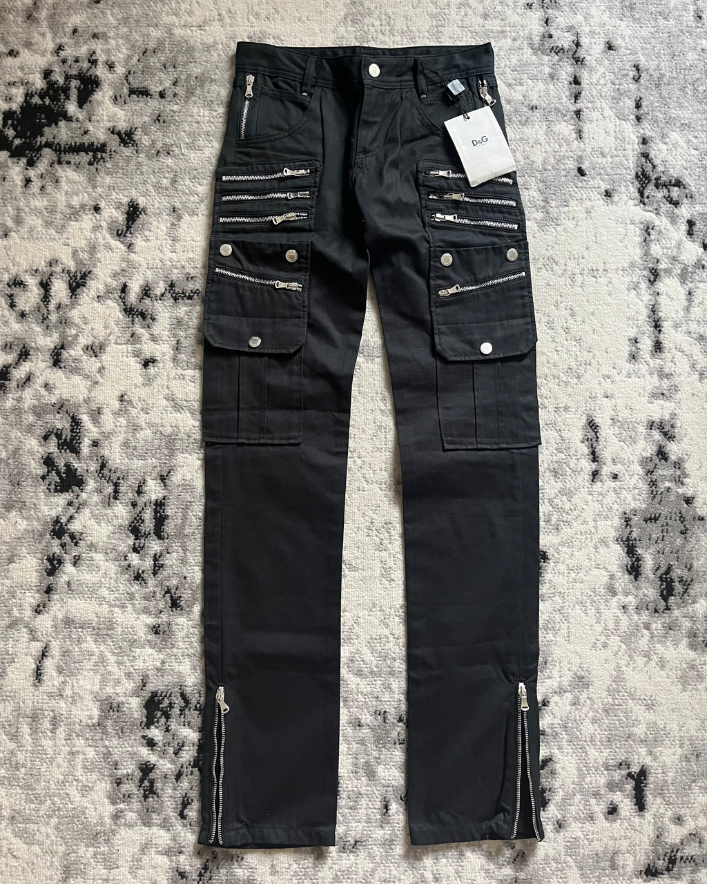 Step into the world of utility fashion with these Dolce & Gabbana Black Utility Pants, a remarkable blend of functionality and bold style. These pants are designed with a striking array of 15 zippers, making them a practical and fashion-forward choice.