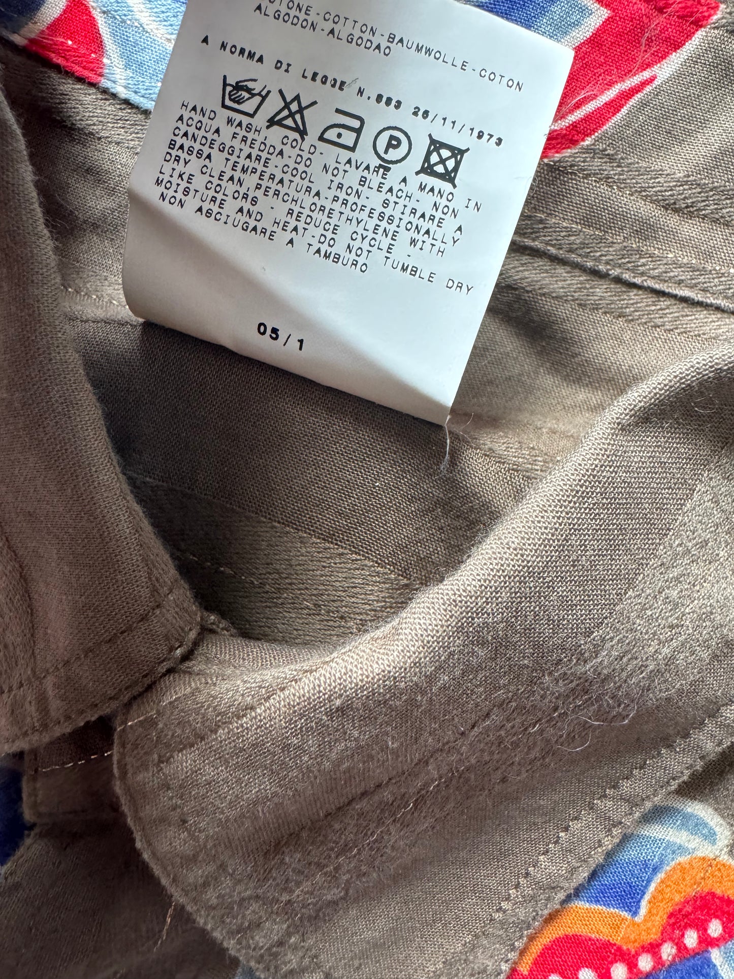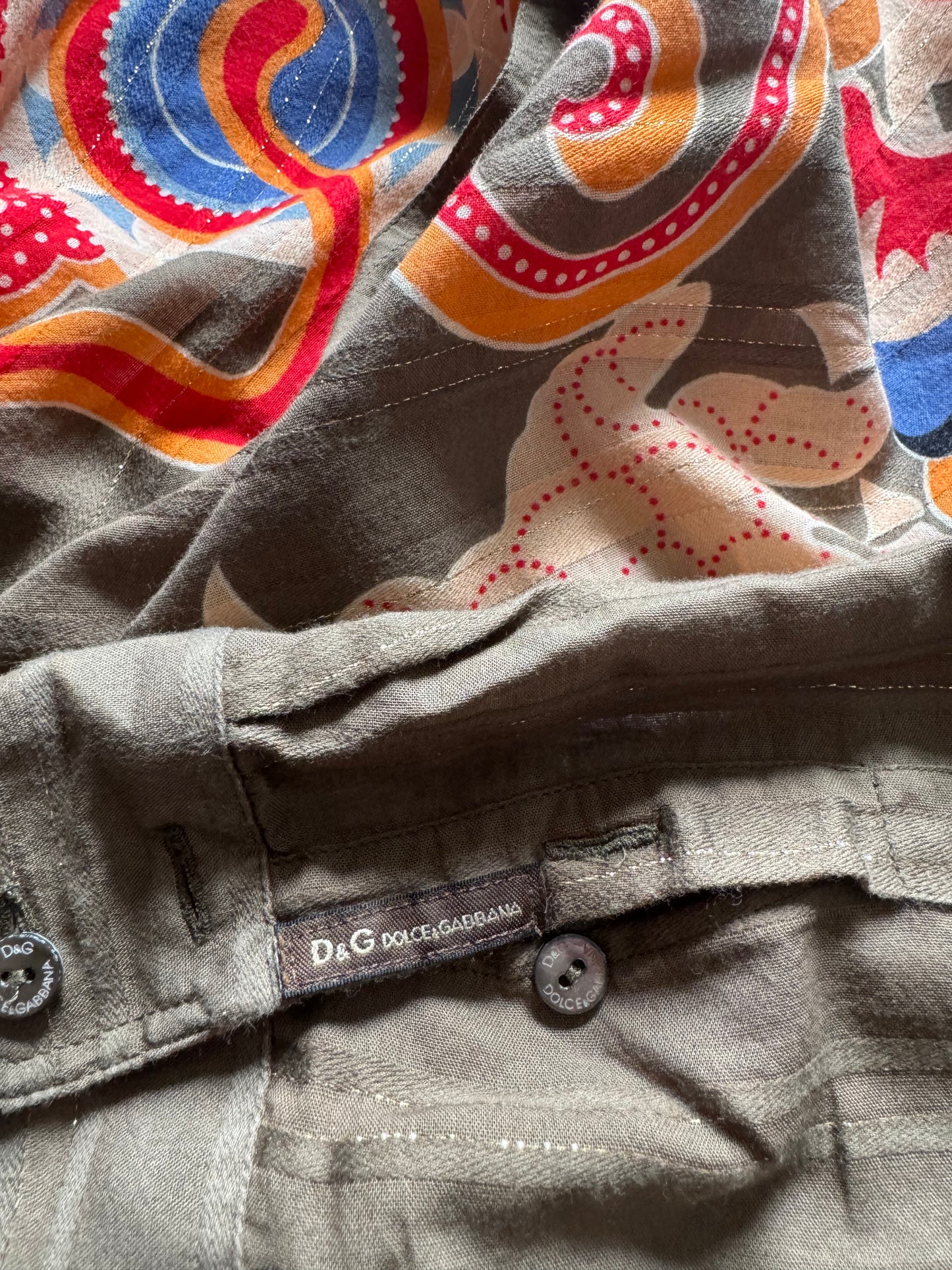 The SS2005 collection from Dolce & Gabbana is celebrated for its exploration of global influences and vibrant prints. The Dragon Japan Atmosphere Shirt embodies the collection’s theme of cultural fusion, merging traditional Japanese motifs with modern Italian design sensibilities. This collection marked a period of bold experimentation for Dolce & Gabbana, resulting in pieces that are both unique and timeless. Still in a very great overall condition. Marked as size XL, fits L.