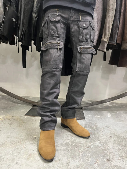 SS2006 Cavalli Multi Pocket Brut Cargo Bondage Pants. Dressed in a rugged yet refined aesthetic, these cargo pants feature multiple pockets strategically placed for both utility and style. Rare item. Still in a great overall condition. Marked as size 29. Model is 181cm