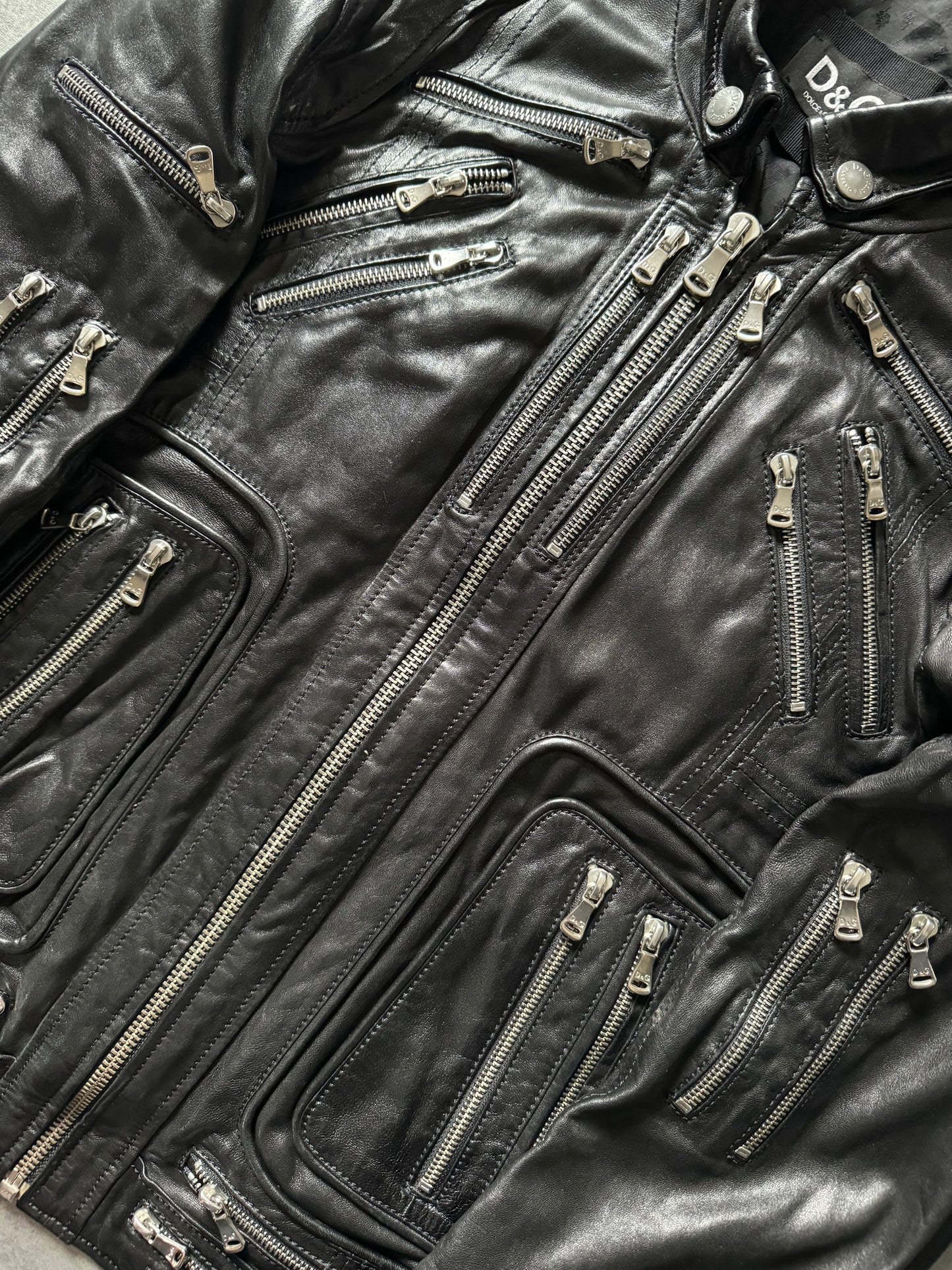 SS2008 Dolce & Gabbana 26 Zips Black Ultimate Leather Jacket (M)