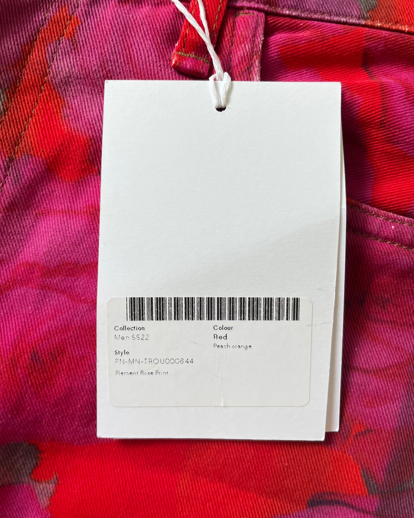 Discover a harmonious blend of artistic charm and contemporary style with Acne Studios SS22 Men's Pink Red Flowers Rose Pants. These pants are a true statement piece, showcasing a mesmerizing pattern of pink and red flowers, exuding an air of refined elegance.